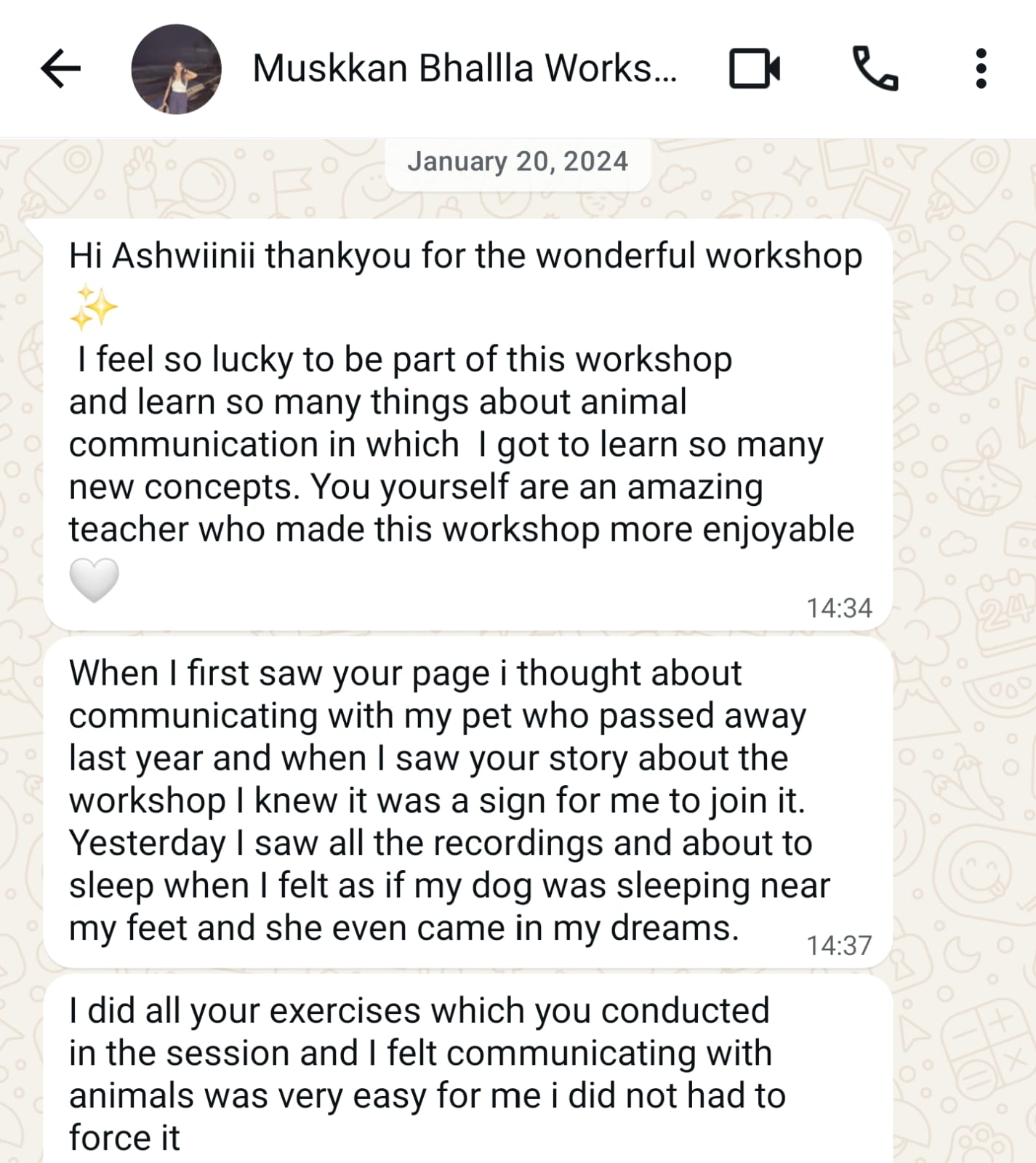 Join Ashwiinii Salve , India's leading animal communicator, for an immersive 2-day workshop to elevate your intuitive skills from basic to mastery.