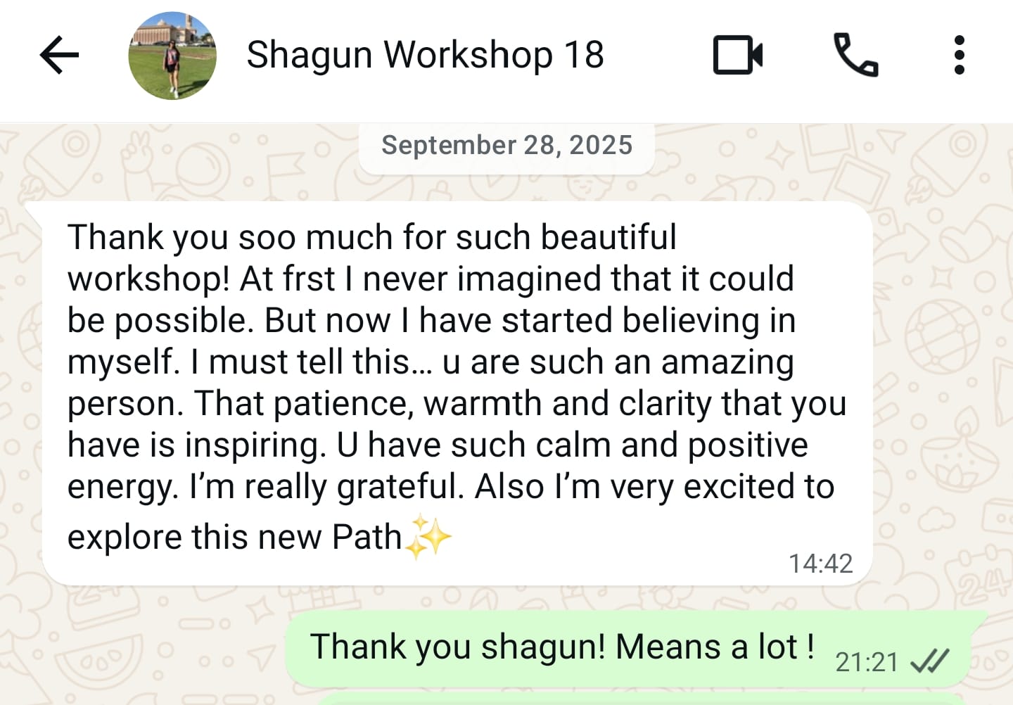 If you feel the calling and want to register for this workshop, you can choose the option that works best for you. You can also Whatsapp me if you have any queries.